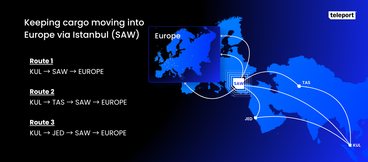 Some networks are now routing freight from Kuala Lumpur through Istanbul directly, or via secondary hubs such as Tashkent and Jeddah before onward European connections.